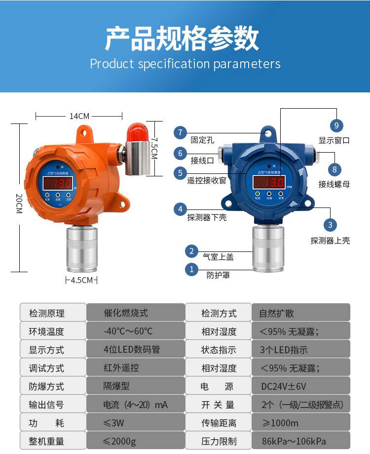 | 环境温度 | -40℃~70℃(可燃) -20℃~50℃(毒性气体) |