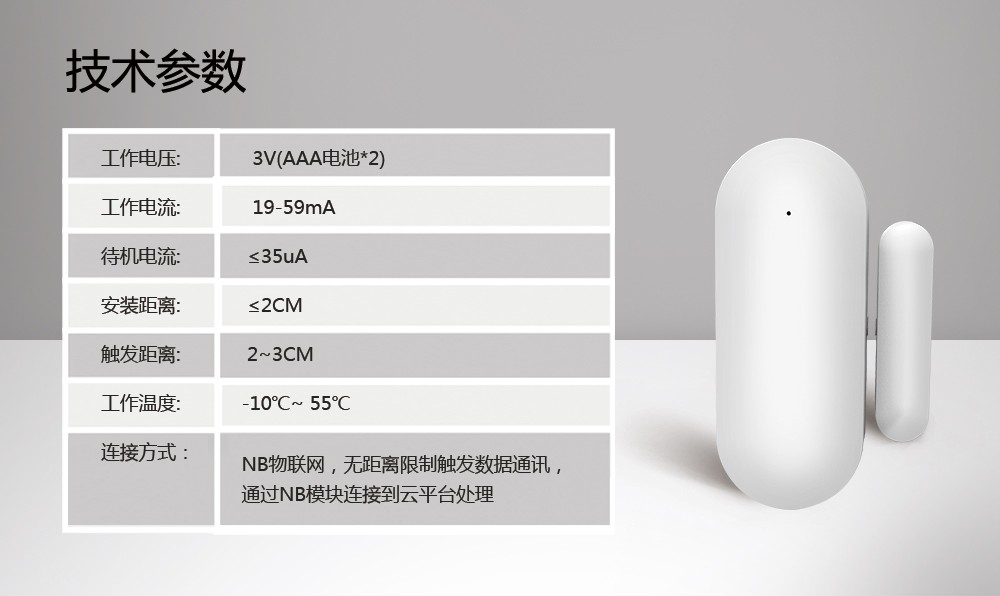 低成本:基于NB-IoT无线网络通信,免布线,节约布线成本;